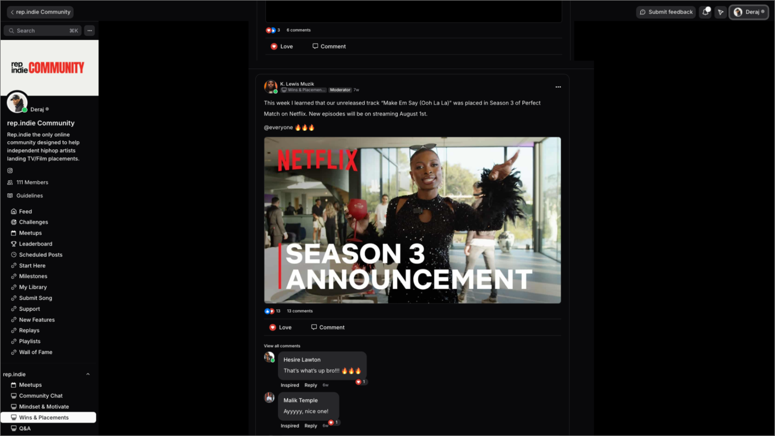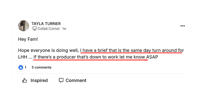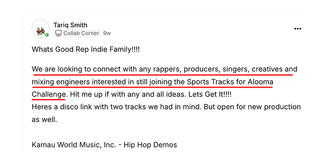 The community helped me land a placement for a promo spot for ESPN. Also signed a bunch of my songs/compositions with different sync agencies and music libraries!