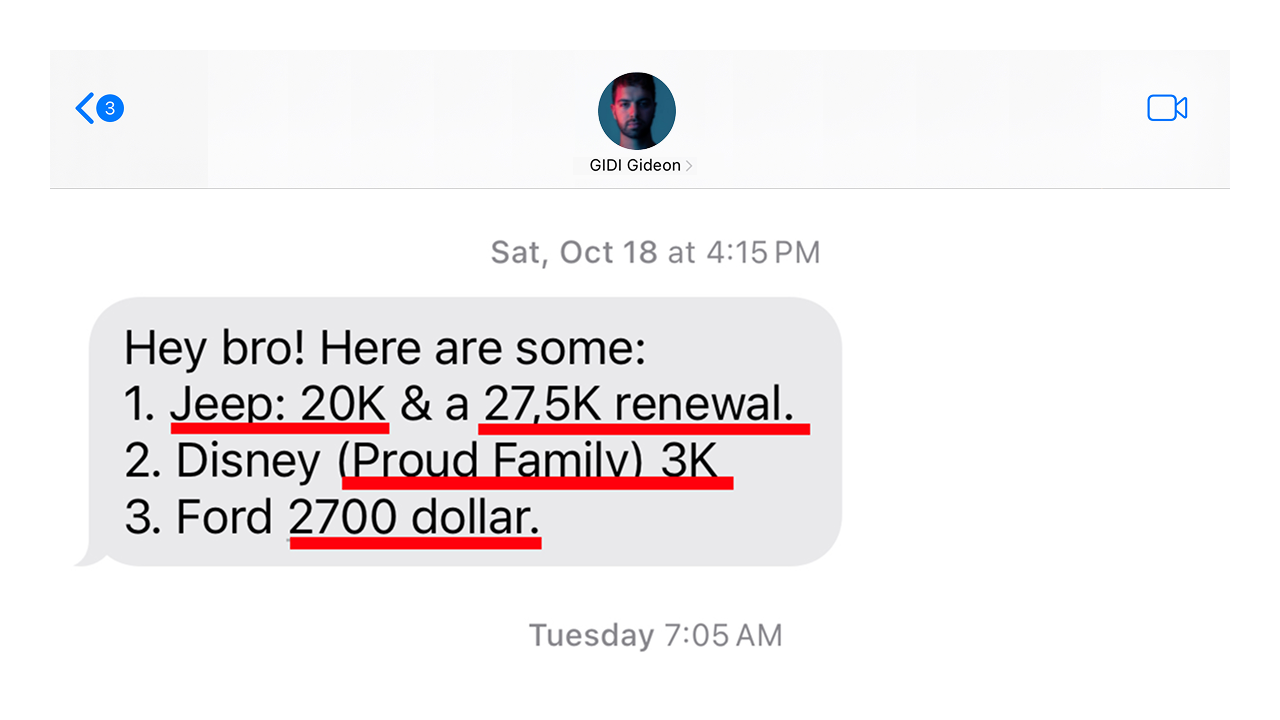 • Frank N. joined and within a year landed his first placement for $13k w/ Armani.